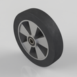 Black rubber tyre on aluminium centred wheel with a ball bearing. Diameter 250mm, tread width 50mm, bore size 20mm, hub length 60mm. Load capacity 500kg.