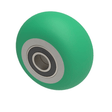 100mm diameter 85 shore A green ergonomic polyurethane tyred on an aluminium centred wheel with ball bearings. Tread width 50mm, bore 20mm, hub 50mm. Load capacity 350kg.