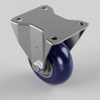 Pressed steel fixed castor with a top plate fixing fitted with a ergonomic blue 75 shore A polyurethane tyre on aluminium centred wheel with ball bearings. Wheel diameter 100mm, tread width 40mm, overall height 128mm, top plate 105mm x 86mm, hole centres 80mm x 60mm. Load capacity 300kg at 4kph