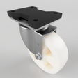 Pressed steel swivel castor with a top plate fixing fitted with a white nylon wheel with roller bearings. Wheel diameter 160mm, tread width 50mm, overall height 209mm, top plate 135mm x 110mm, hole centres 105mm x 80mm Load capacity 600kg.