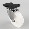 Pressed steel swivel castor with a top plate fixing fitted with a white nylon wheel with ball bearings. Wheel diameter 200mm, tread width 50mm, overall height 252mm, top plate 135mm x 110mm, hole centres 105mm x 80mm Load capacity 700kg.