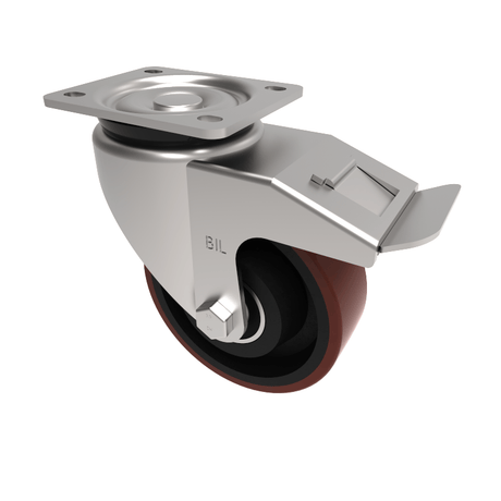 Ergonomic Polyurethane Plate Swivel Castor 125mm 400kg Load