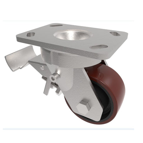 Ergonomic Polyurethane Plate Swivel Castor Brake 100mm 350kg Load