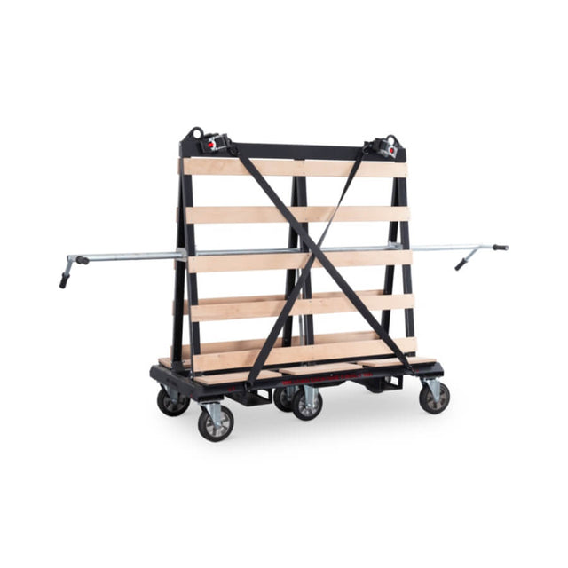 Specially designed for storing and transporting large sheet materials. The wooden slats make it a great option for moving large sheets of glass and other expensive, easily scratchable materials or sheets too. It also comes with extending handle to safely accommodate different length materials