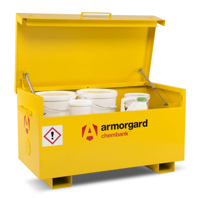 The high-visibility yellow finish and clear signage ensure chemicals are easily distinguished from fuel stores—an essential advantage for sites with multi-national teams.