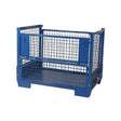 This four-sided heavy-duty collapsible cage pallet is designed for versatile storage and efficient handling in industrial, logistics, and warehouse environments. Featuring a removable half-drop gate on one long side and a full removable gate on the opposite side, it allows easy access for loading and unloading items. The sides are fitted with 50mm mesh infill, and a sheet steel base ensures strength and stability. Finished in blue epoxy powder coating, the pallet is durable, visible, and resistant to wear.