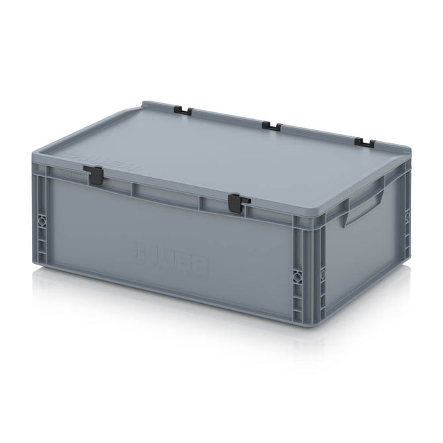 These solid Euro stacking containers feature an integral, hinged lid and a modular design for efficient storage and handling.