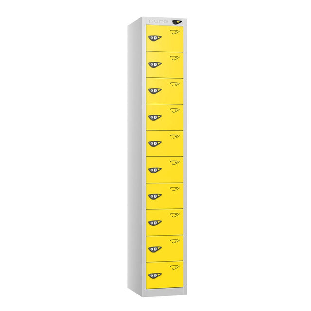 Small compartment 10 door steel lockers meet most users needs for secure storage of personal items. A wide range of locking options and accessories make this one of the most practical solutions for wallets, purses, mobile phones and other small items.