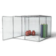 Galvanised security cage for storing and securing gas bottles and bulky items that are too large to be stored inside.