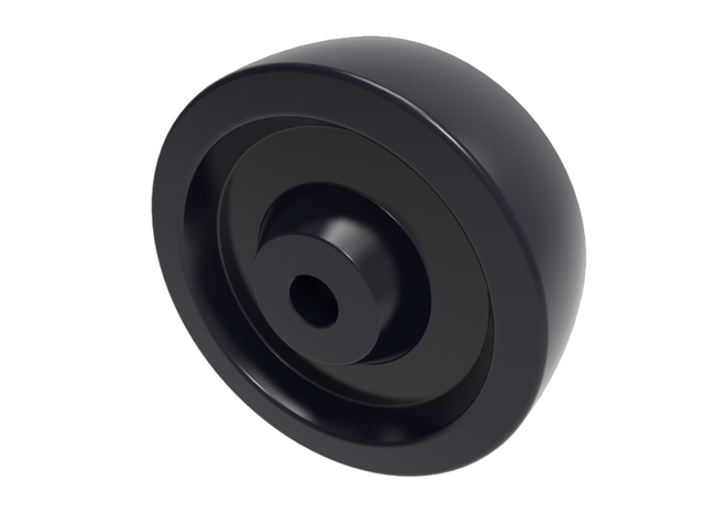 125mm diameter black Ditherm high temperature wheel with a plain bore. Tread width 40mm, bore 15mm, hub 45mm, temperature range up to 300žc. Load capacity 250kg. REACH compliant, RoHs Compliant, USDA approved FDA approved.