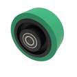 Green polyurethane tyre cast iron centred wheel with sealed ball bearings and no grease nipple. Wheel diameter 100mm, tread width 40mm, hub 48mm, bore 15mm. Load capacity 300kg