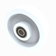 White nylon wheel with ball bearings. Diameter 125mm, tread width 35mm, bore size 15mm, hub length 40mm. Load capacity 500kg.