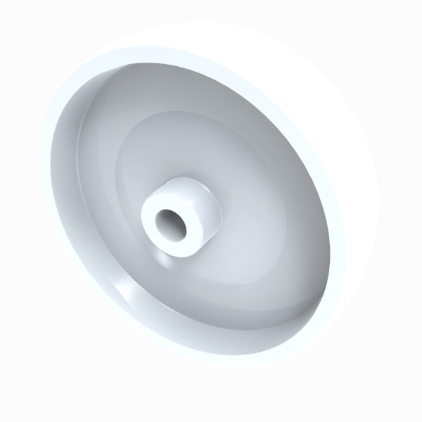 150mm diameter white nylon wheel with a plain bore. Tread width 40mm, bore 15mm, hub 45mm. Load capacity 300kg.