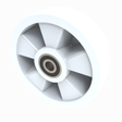White nylon wheel with ball bearings. Wheel diameter 200mm, tread width 57mm, hub length 60mm, bore 20mm. Load capacity 800kg.