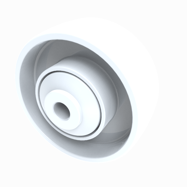 White nylon wheel with a single ball bearing with retaining caps. Wheel diameter 80mm, tread width 32mm, bore size 10mm, hub length 47mm. Load capacity 200kg.