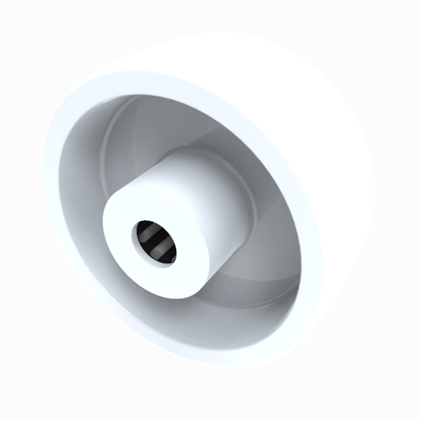 White nylon wheel with roller bearing. wheel diameter 80mm, tread width 35mm, bore size 12mm, hub length 45mm. Load capacity 250kg.