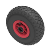 Black pneumatic tyre on red polypropylene centre rim with a roller bearing. Fitted with a 4 ply diamond tread patterned tyre. Wheel diameter 260mm, tread width 85mm, hub 75mm, bore 20mm. Load capacity 120kg at 4KPH, REACH COMPLIANT. Not recommended for foam filling please take advise from the BIL Technical department or consider the BIL puncture proof range. for non-towing applications please note we manufacture to order and therefore a 24 hour delivery may not be possible.Important notice : Refer to rim for PSI rating not the tyre