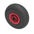 Black pneumatic tyre on red polypropylene centre rim with a roller bearing. Fitted with a 4 ply diamond tread patterned tyre. Wheel diameter 260mm, tread width 85mm, hub 75mm, bore 25.4mm. Load capacity 120kg at 4KPH, REACH COMPLIANT. Not recommended for foam filling please take advise from the BIL Technical department or consider the BIL puncture proof range. for non-towing applications please note we manufacture to order and therefore a 24 hour delivery may not be possible.Important notice : Refer to rim for PSI rating not the tyre