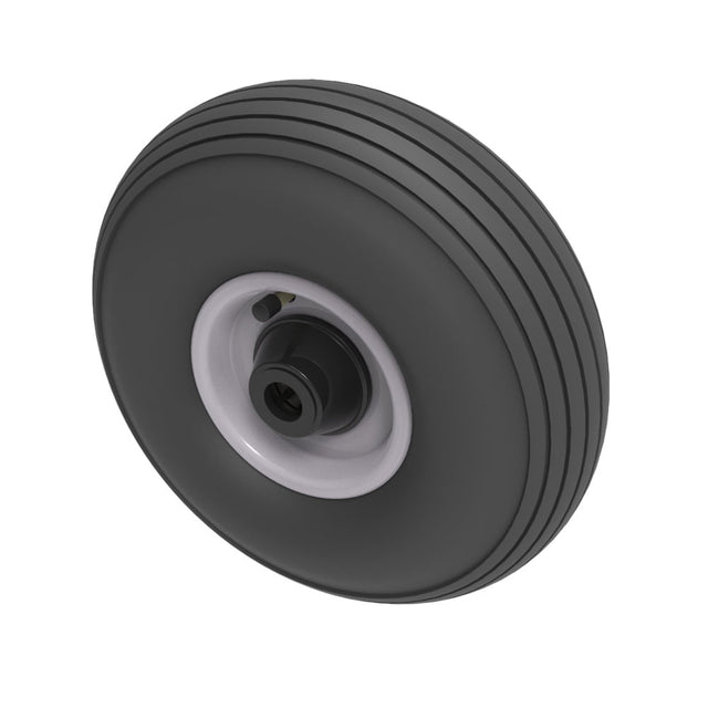 Black pneumatic tyre on grey steel rim centre with a roller bearing. Fitted with a 4 ply ribbed tread patterned tyre. Wheel diameter 260mm, tread width 85mm, hub width 75mm, bore 25mm. Load capacity 200kg at 4KPH REACH COMPLIANT. Not recommended for foam filling please take advise from the BIL Technical department or consider the BIL puncture proof range. for non-towing applications please note we manufacture to order and therefore a 24 hour delivery may not be possible.