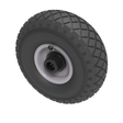 Black pneumatic tyre on grey steel rim centre with a roller bearing. Fitted with a 6 ply diamond tread patterned tyre. Wheel diameter 260mm, tread width 85mm, hub width 75mm, bore 25.4mm. Load capacity 270kg at 4KPH,REACH COMPLIANT. Not recommended for foam filling please take advise from the BIL Technical department or consider the BIL puncture proof range. for non-towing applications please note we manufacture to order and therefore a 24 hour delivery may not be possible.