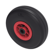 Black pneumatic tyre on red polypropylene centre rim with a plain bore. Fitted with a 4 ply ribbed tread patterned tyre. Wheel diameter 400mm, tread width 100mm, hub 66mm, bore 25.4mm. Load capacity 200kg at 4KPH, REACH COMPLIANT. Not recommended for foam filling please take advise from the BIL Technical department or consider the BIL puncture proof range. for non-towing applications please note we manufacture to order and therefore a 24 hour delivery may not be possible.Important notice : Refer to rim for PSI rating not the tyre