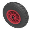 Black pneumatic tyre on red polypropylene centre rim with a roller bearing. Fitted with a 4 ply diamond tread patterned tyre. Wheel diameter 400mm, tread width 100mm, hub 75mm, bore 25.4mm. Load capacity 200kg at 4KPH, REACH COMPLIANT. Not recommended for foam filling please take advise from the BIL Technical department or consider the BIL puncture proof range. for non-towing applications please note we manufacture to order and therefore a 24 hour delivery may not be possible.Important notice : Refer to rim for PSI rating not the tyre