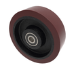 Brown polyurethane tyred wheel on cast iron centre with a ball bearing. Wheel diameter 200mm, tread width 60mm, bore size 20mm, hub length 60mm. Load capacity 1300kgs.