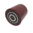 Brown Polyurethane roller on a steel core with ball bearings. Wheel diameter 70mm, tread width 70mm, bore 20mm, hub 70mm. Load capacity 500kg.