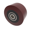 Brown polyurethane tyred cast iron centred wheel. Wheel diamter 75mm, tread width 40mm, hub with 40mm, Bore size 12mm, Load capacity 300kg.