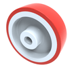 Red polyurethane tyred nylon centred plain bore. Wheel diameter 100mm, tread width 30mm, bore size 12mm, hub length 40mm. Load capacity 180kg.