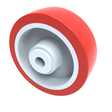 Red polyurethane tyred nylon centred plain bore. Wheel diameter 100mm, tread width 32mm, bore size 12mm, hub length 45mm. Load capacity 250kg