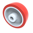 Red polyurethane tyred nylon centred plain bore. Wheel diameter 100mm, tread width 33mm, bore size 15mm, hub length 48mm. Load capacity 250kg