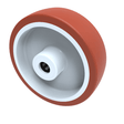 Brown polyurethane tyre on white nylon centred wheel with roller bearing. Diameter 100mm, tread width 30mm, bore size m12 hub length 40mm Load capacity 170kg.