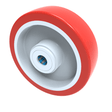 Red polyurethane tyre white nylon centred wheel with roller bearing, 125mm wheel diameter, 35mm tread width, 15mm bore, 45mm hub length, to carry a load capacity of 300kgs.