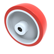 Red polyurethane tyre on white nylon centred wheel with roller bearing. Diameter 125mm, tread width 36mm, bore size 15mm, hub length 48mm. Load capacity 300kg.