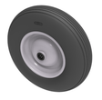 Black ribbed pattern puncture proof tyre grey steel centred wheel with a roller bearing. Diameter 400mm, tread width 100mm, bore size 25mm, hub length 75mm. Load capacity 200kg. for non towing applications. REACH Compliant.