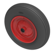 Black ribbed pattern puncture proof tyre red steel centred wheel with a roller bearing. Diameter 400mm, tread width 100mm, bore size 25mm, hub length 65mm. Load capacity 200kg.for non towing applications.