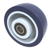 Blue 82 shore hardness polyurethane tyred nylon centred ball bearing. Wheel diameter 125mm, tread width 40mm, bore size 20mm, hub length 48mm. Load capacity 300kg.