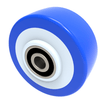 Blue 82 shore hardness polyurethane tyred nylon centred wheel with a ball bearing. Wheel diameter 80mm, tread width 33mm,hub length 40mm. 12mm ball bearing. Load capacity 210kg.