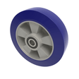 200mm diameter Blue 75 Shore A polyurethane tyre on an aluminium centred wheel with ball bearings. Tread width 50mm, bore 20mm, hub 60mm. Load capacity 700kg at 4kph and 280kg at 16kph.