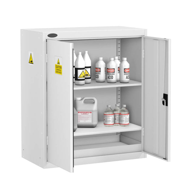 - These cabinets will allow the safe storage of acids and alkalis in highly visible units
