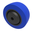 Blue elastic 65 shore A rubber wheel on a black nylon centre with single ball bearing and thread guards. Wheel diameter 125mm, tread width 50mm, bore 12mm, hub 63mm. Load capacity 275kg. REACH compliant also PAH-Free rubber to confirm to EU-directive 2005/69/EC