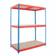 Heavy Rivet Racking with 3 Orange Shelves - Price includes three levels, uprights, plastic feet, face and side beams, deck supports* and chipboard decks for all levels (*except 915mm wide).