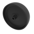 125mm diameter black polypropylene wheel with a plain bore. Tread width 32mm, bore 10mm, hub 36mm. Load capacity 100kg.