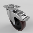 Pressed steel swivel castor with a top plate fixing fitted with a brown polyurethane tyre cast iron centred wheel with ball bearings and a total lock brake. Wheel diameter 200mm, tread width 50mm, overall height 245m, top plate 135mm x 110mm, hole centres 105mm x 80mm/75mm. Load capacity 1000kg.