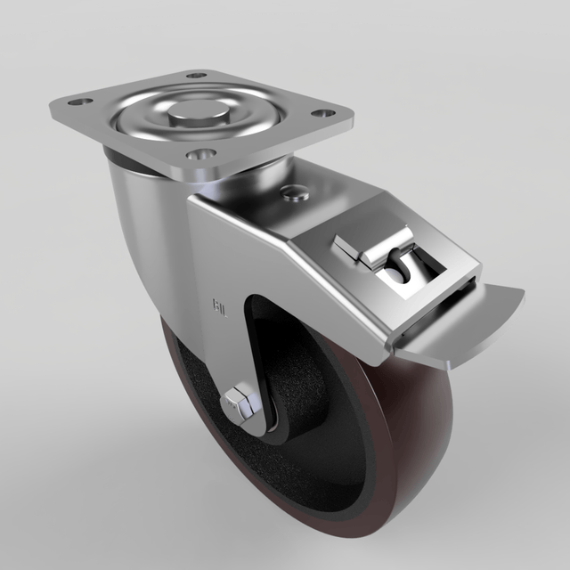 Polyurethane Cast Iron Plate Swivel Castor Brake 200mm 1000kg Load