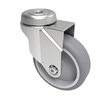 Stainless steel swivel castor with a bolt hole fixing fitted with a grey thermoplastic rubber tyre on polypropylene centred wheel with Plain Bore. Wheel diameter 125mm, tread width 32mm, overall height 156mm, bolt hole 12mm. Load capacity 100kg.